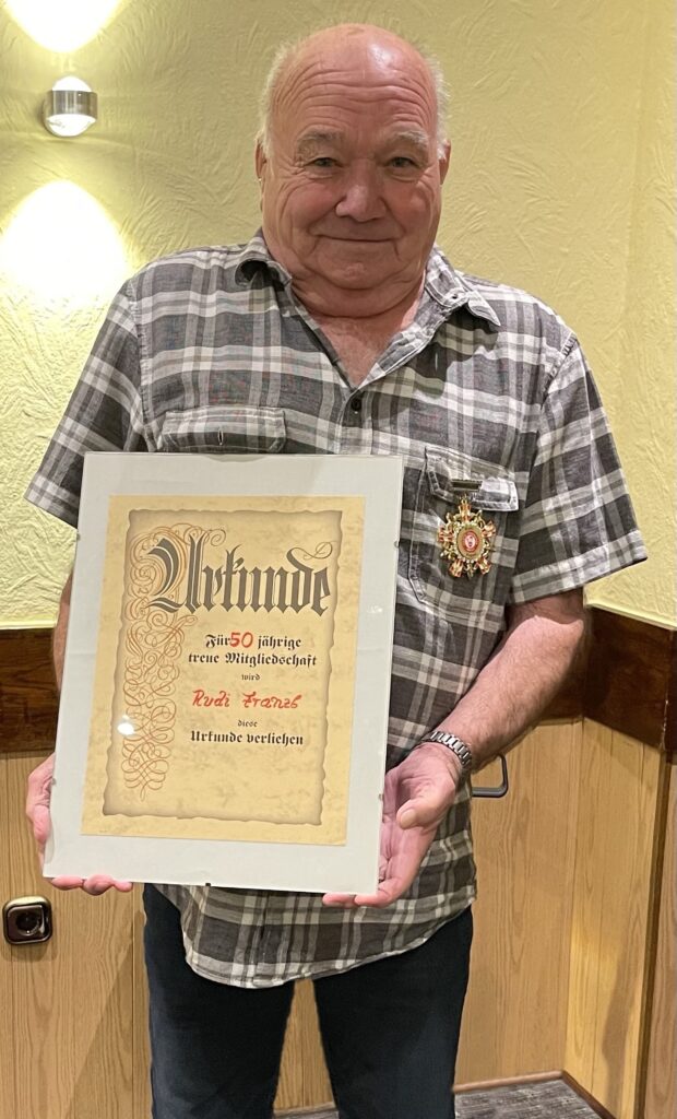 Der Vorstand bedankt sich bei unserem treuen Elferratsmitglied und Ehrensenator Rudi für seine 50 Jährige Unterstützung und Treue gegenüber unserem Verein.